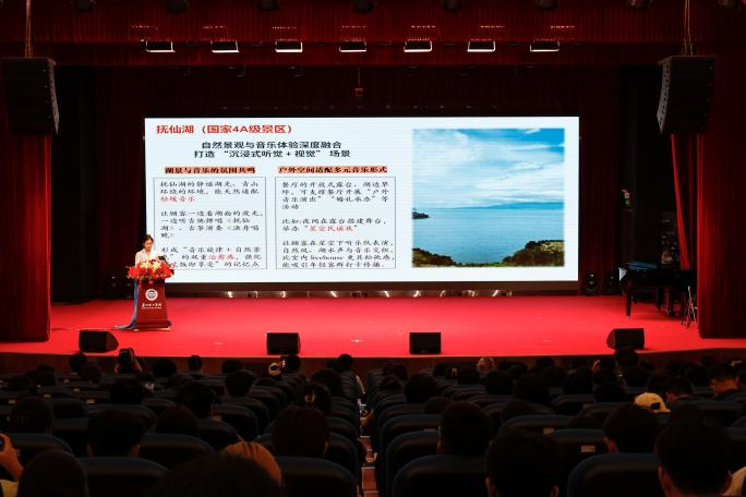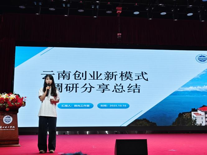 微光工作室调研团队以抚仙湖餐厅为样本,解析“沉浸式湖景用餐+常态化音乐展演”模式,拆解线上社媒IP打造至线下服务的全链条运营逻辑,清晰点明文旅创业“场景差异化+运营精细化”的核心竞争力。音乐舞蹈学院调研团队以山海餐厅为调研对象,分享音乐赋能创业路径,讲解PPT时穿插器乐合奏,展示分时段演艺、民族乐器与菜品融合及定制化合作等方案,充分印证“文化元素+专业技能”的创业赋能价值,汇报后音乐合唱重温调研人文。