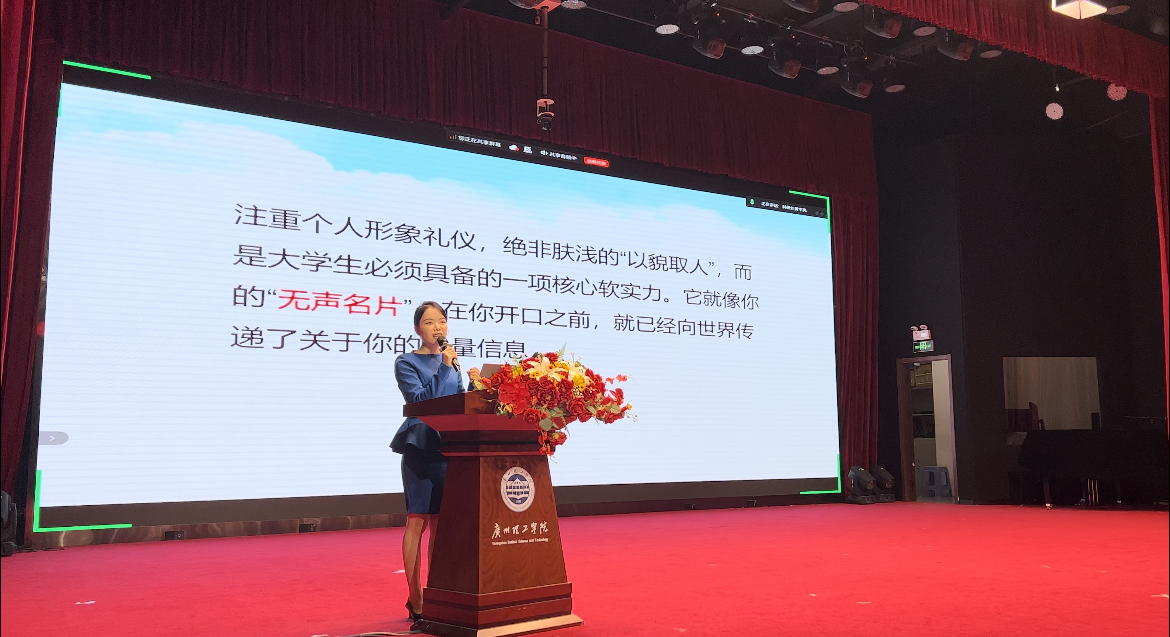 讲座围绕“从个人形象到职场礼仪修炼”主题,以“理论结合案例”的形式展开。晓琳指出,礼仪不仅体现为外在行为规范,更是尊重自我与他人、彰显修养的生活智慧。她系统解析了不同场合下的形象管理要点,帮助听众掌握“干净得体”的核心原则;在沟通礼仪方面,区分基础礼仪与高情商沟通技巧,并结合校园实际情境进行阐释;针对职场预备内容,她重点讲解了商务正装规范、宴请座次等关键细节,指出这些要素在面试与工作中对建立信任、提升职业形象的重要作用。
