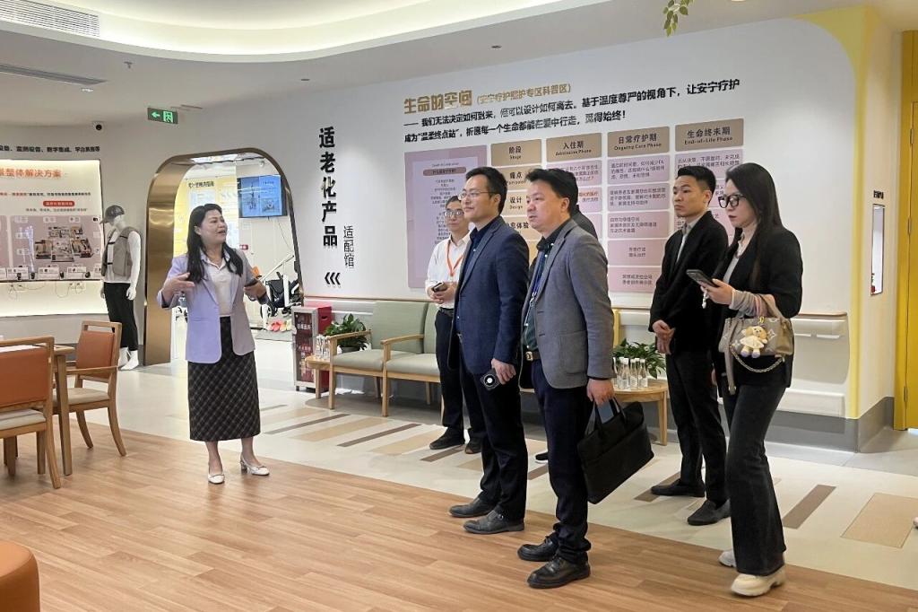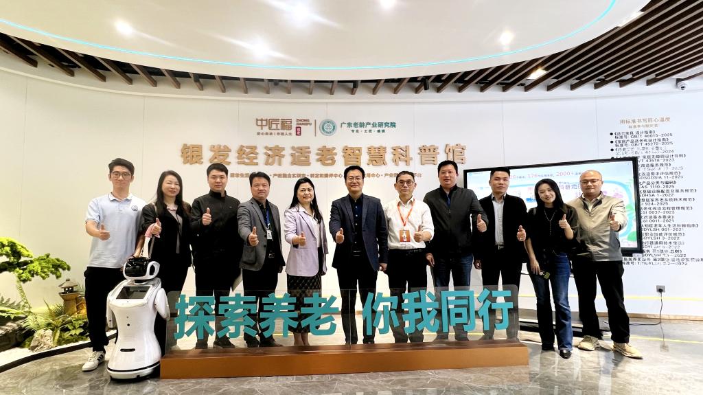 考察期间,在卢春献总经理、古武秘书长的陪同下,伏焕昌常务副校长一行实地参观了中匠福银发经济适老智慧科普馆。据悉,该科普馆由广东老龄产业研究院发起,围绕“机构、社区、居家”三大养老场景,打造沉浸式“全生命周期养老科普门户”,是展示适老化产品、推动产业标准建立、促进跨界合作的重要窗口,集中展现了中匠福公司在适老化产品创新、智能制造应用等方面的丰硕成果,让考察团对适老化产业发展现状与未来趋势有了更直观、全面的认识。
