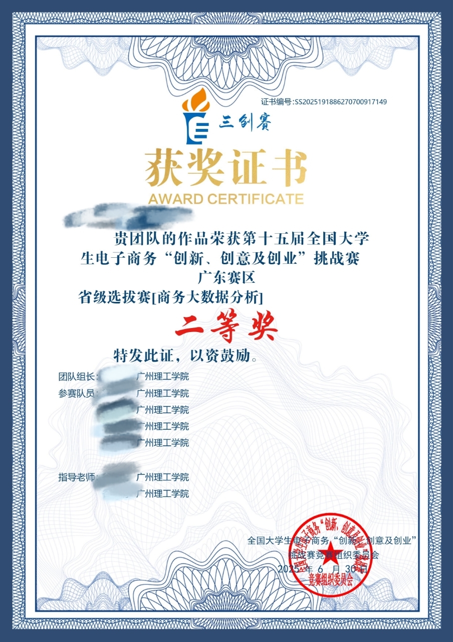 团队成员先后多次在全国大学生商科综合能力大赛国赛二等奖、第十五届全国大学生电子商务“创新、创意及创业”挑战赛省二等奖、第十一届全国大学生统计建模大赛省三等奖等学科赛事中斩获多项荣誉奖项,同时成功策划和举办多场校园活动,获得广泛好评。
