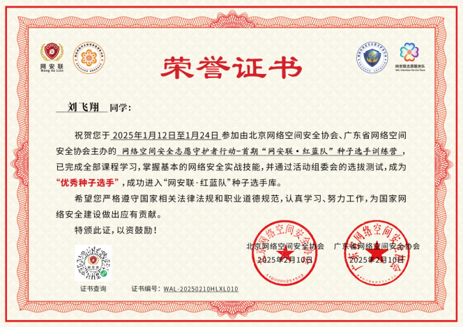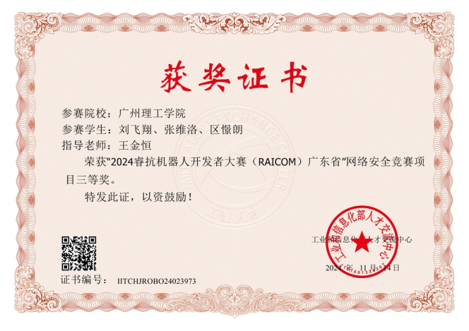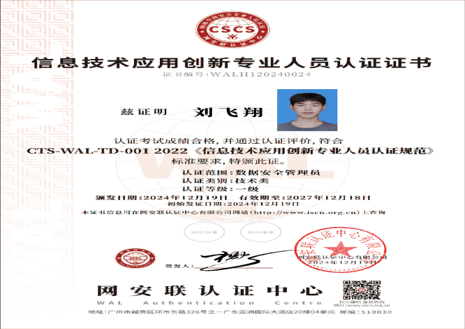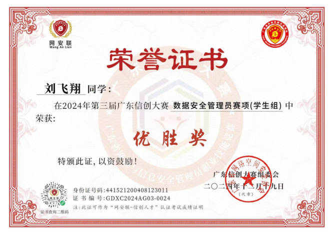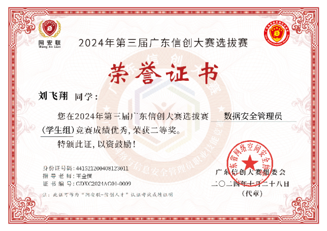 刘飞翔:网络工程专业,取得AIforScience科技竞赛省三等奖、睿抗机器人大赛省三等奖,广东信创大赛数据安全赛道初赛二等奖及决赛优胜奖,熟悉计算机视觉、自然语言处理技术等框架。