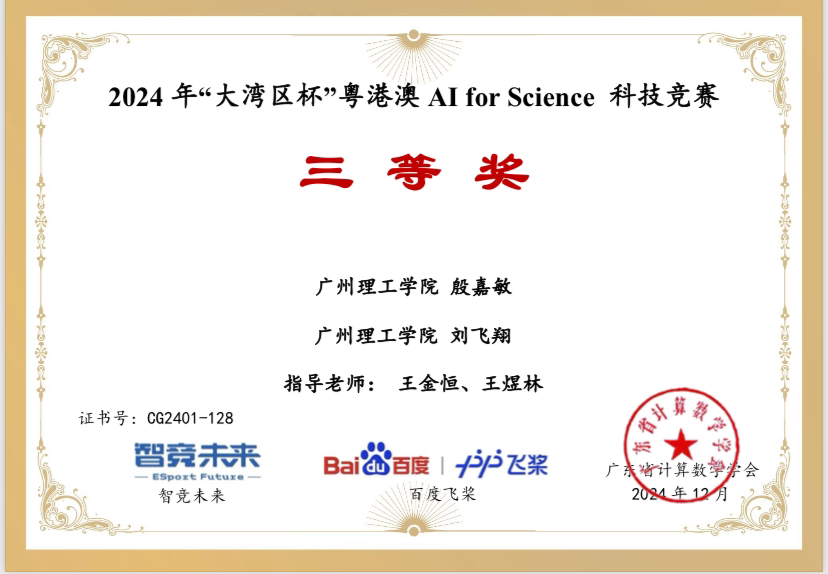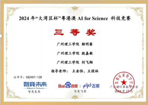 团队成员——计算机工程学院刘飞翔同学,在2024年“大湾区杯”粤港澳AI for Science科技竞赛中,以AI智能体项目为比赛内容,并取得三等奖。