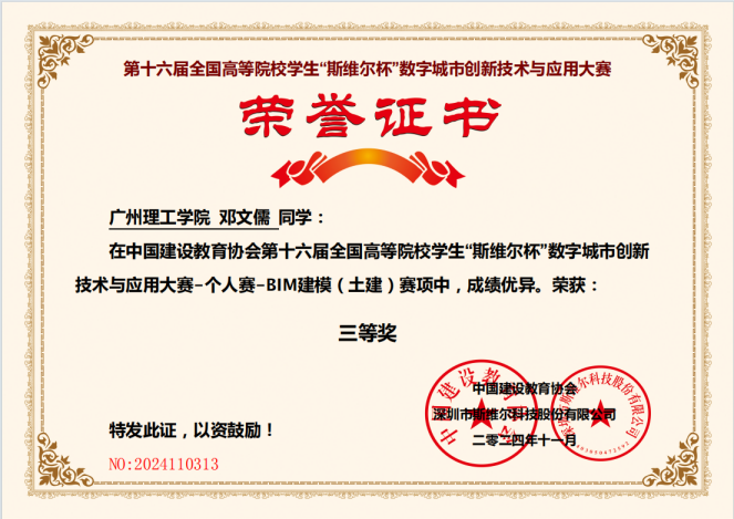 邓文儒:团队负责人,工程造价专业,获得第十六届全国高等院校学生“斯维尔杯”数字城市创新技术与应用大赛省级三等奖,获得广州理工学院第十八届全国大学生先进成图技术与产品信息建模创新大赛校赛三等奖,获得第八届“建模大师杯”全国建筑信息模型(BIM)建模大赛省级优秀奖,成功取得三项发明专利、三项实用新型专利、一项外观专利授理书,拥有一年在工程行业现场实习经验,深入学习AI大模型,已掌握基础并持续拓展认知