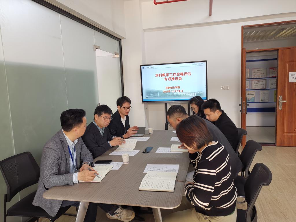 为深入贯彻落实学校2025年教学工作暨合格评估冲刺会议精神,高质量完成创新创业教育特色支撑材料,12月24日,创新创业学院在科创楼407会议室召开了本科教学工作合格评估特色材料推进会。质评中心陈英征副主任到会指导,学院全体教职工参会。会议由创新创业学院余永龙院长主持。